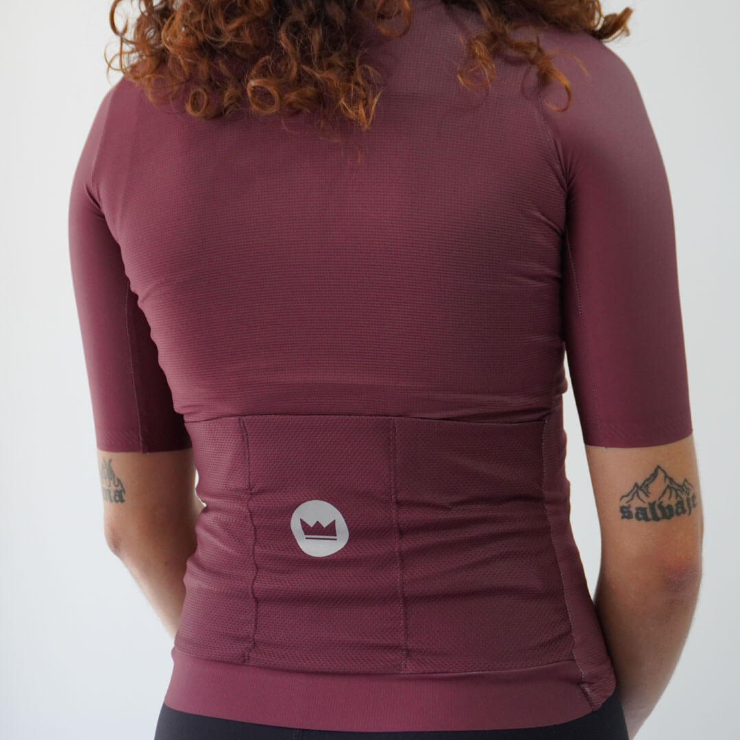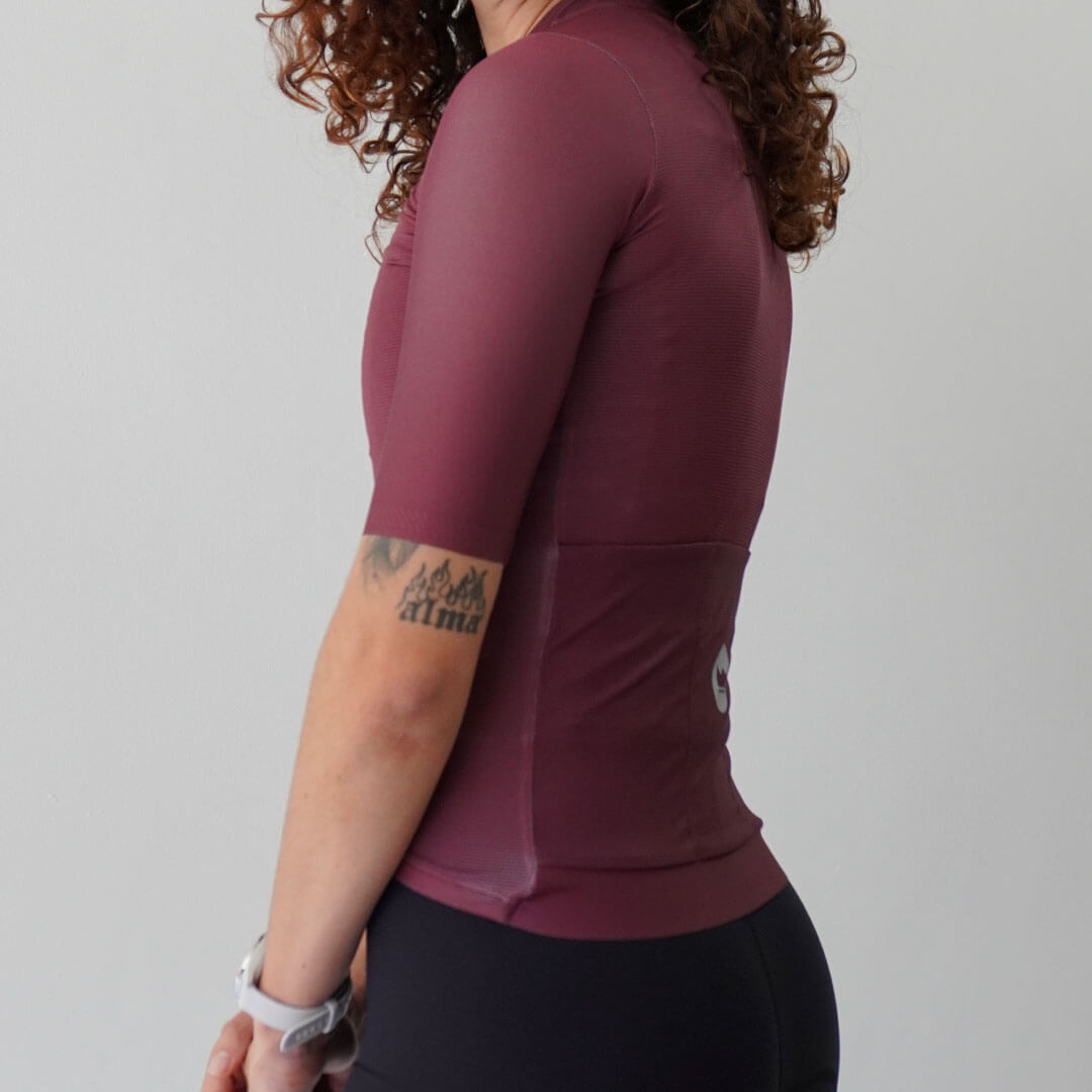 Jersey Elemental Vino: combinación perfecta de diseño y tecnología para ciclistas exigentes, con fit ajustado, mangas láser tubulares y transpirabilidad superior, ideal para jornadas largas y calurosas.