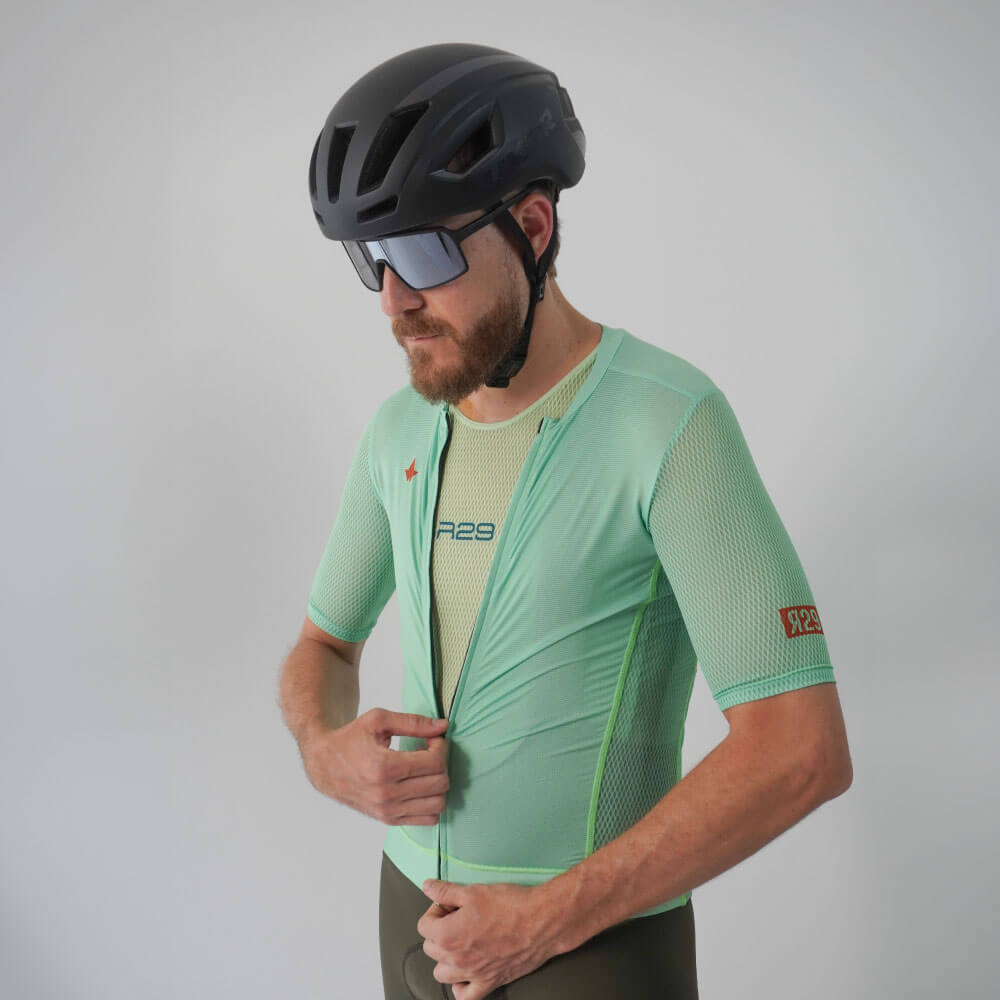 El Jersey Grun es tu aliado ideal para los desafíos más intensos. Combina a la perfección calidad premium y tecnología avanzada, ofreciendo un rendimiento excepcional. Cada aspecto ha sido cuidadosamente diseñado para brindarte lo mejor, con un ajuste ceñido y mangas de malla que no solo mejoran la aerodinámica, sino que también te proporcionan un confort inigualable en salidas largas. Su excelente transpirabilidad y detalles prácticos como los bolsillos traseros y las bandas elásticas antideslizantes aseguran que te concentres en lo esencial: la sensación de libertad que solo una ruta en bicicleta puede ofrecer.