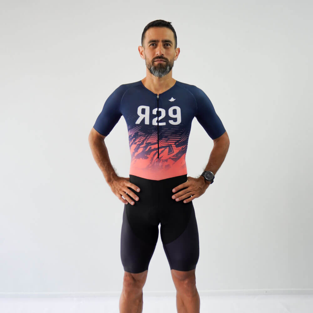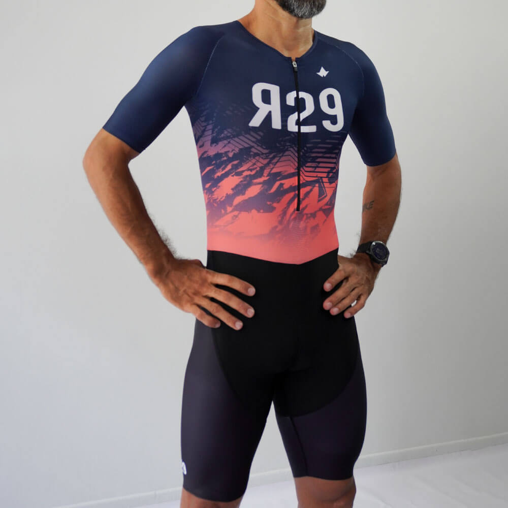 Uniforme de triatlón manga corta diseñado para largas distancias. Con tejidos de alta calidad que garantizan aerodinámica, secado rápido y protección solar SPF 50+. Resistente al cloro y al agua de mar. Equipado con una badana de alto rendimiento, ideal para Full Ironman o Ultraman, que brinda comodidad y ajuste superior.