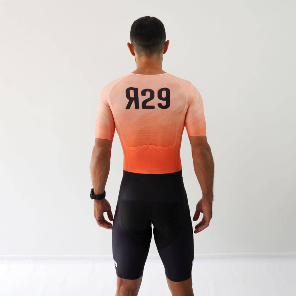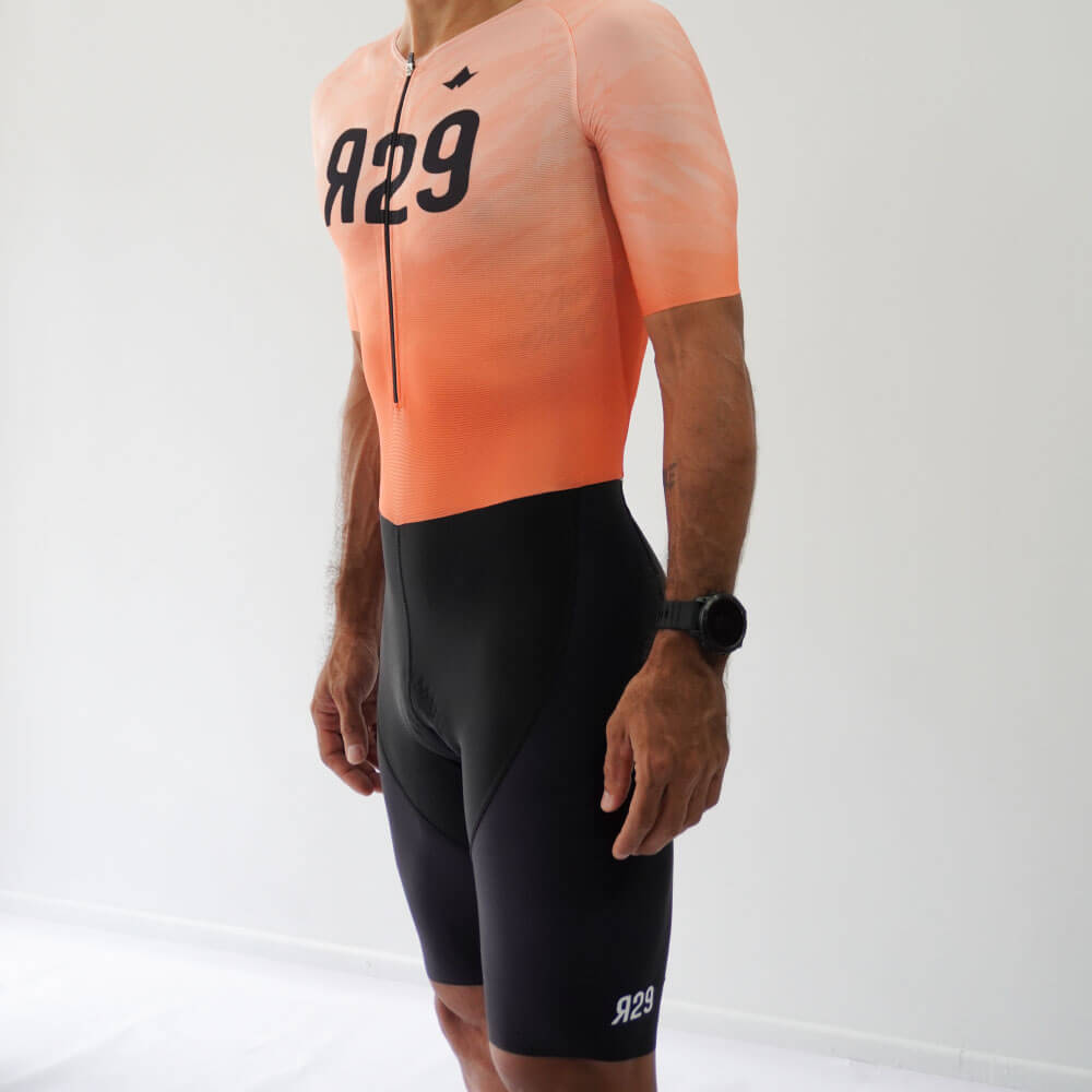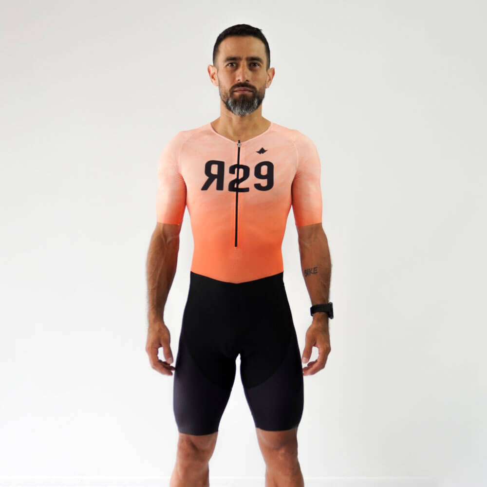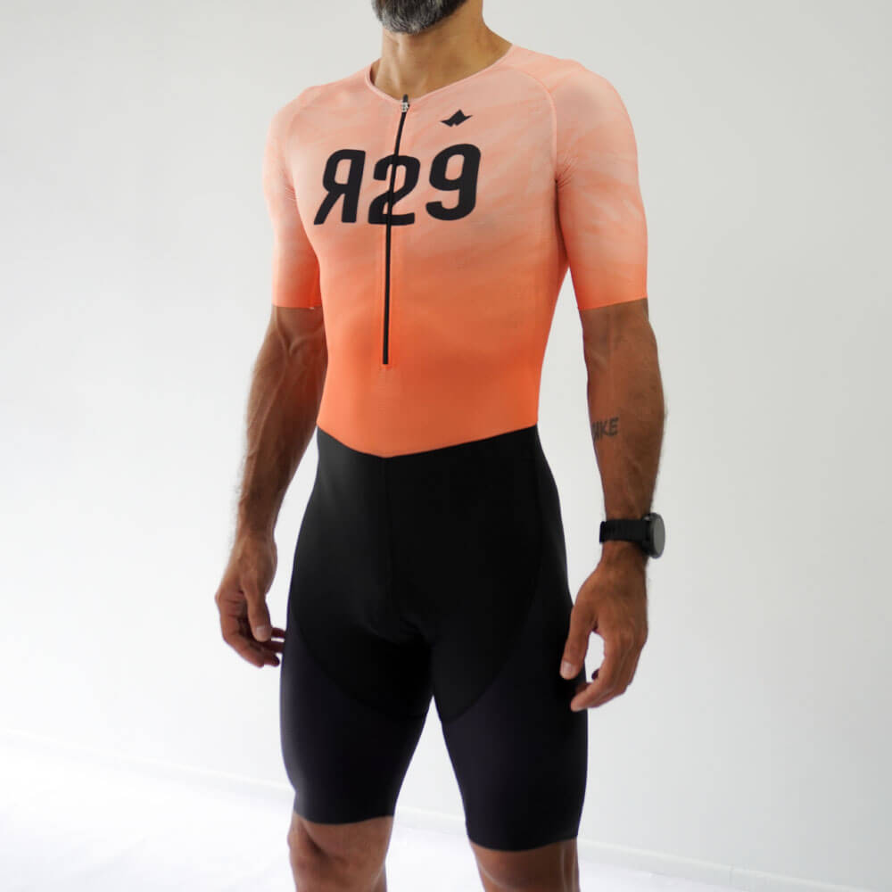 Uniforme de triatlón manga corta diseñado para largas distancias. Con tejidos de alta calidad que garantizan aerodinámica, secado rápido y protección solar SPF 50+. Resistente al cloro y al agua de mar. Equipado con una badana de alto rendimiento, ideal para Full Ironman o Ultraman, que brinda comodidad y ajuste superior.